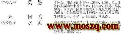我們家譜中有關莫愚的介紹