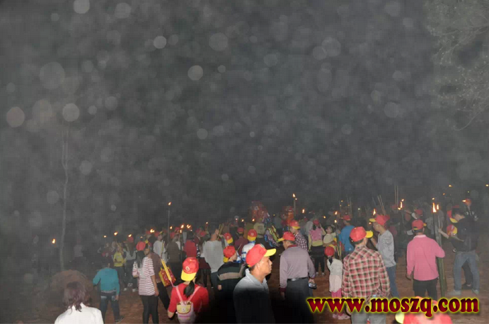 穿越在村后的几个山头,和村前的田野巡游,锣鼓声丶爆竹声丶欢呼声震撼麒麟百村,火把的虹光,烟花的烟霞,爆竹的闪光,组成七彩斑斓的彩虹,照亮了山林丶村庄和田野,