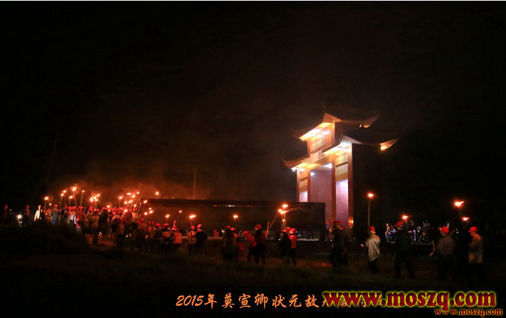 ,这是人们对自然界的一种敬畏行为,希望通过旺龙祈福活动天地间能发生一些灵气,是祈求上苍降福于人间,来年风调雨顺、人丁兴盛的一种美好愿望。旺龙祈福活动,是村民自发组织举行,三年一次。该活动起源于公元906年,至今已经有一千一百多年历史,当年为纪念状元莫宣卿在南山脚下建立了一座状元祠,村民认为中华民族是龙,莫宣卿是龙的传人,是龙的化身,所以村民们一般都是在春节期间选某一天傍晚进行,参加活动的都是以莫家人为主,邻近村庄部分人响应参与,姓氏不限,参加活动人手一支火把,有序排成长龙交差出行,围绕村前村后巡游一周,然后从北面登上状元祠后靠山——南山顶,又从山顶沿“龙脉”走到田野,又从田野走回到状元祠,在此期间,村民兴高采烈丶唱歌跳舞,舞狮丶放炮,欢声雷动,一直庆祝到午夜。